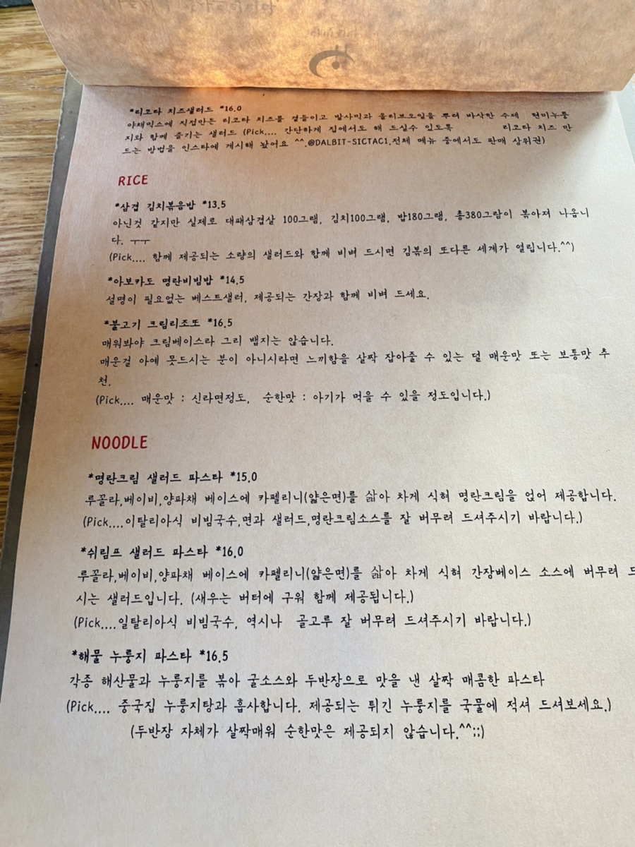 이렇게 자세한 설명이 적혀있는 메뉴판이 있구요